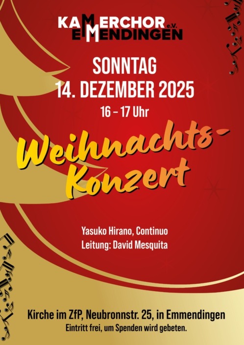 Samstag, 23. November 2024, 19 Uhr, in der Ev. Kirche Eichstetten unter der Leitung von David Mesquita und Michael Meier